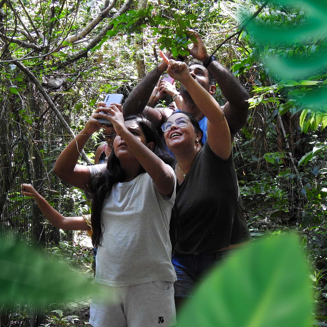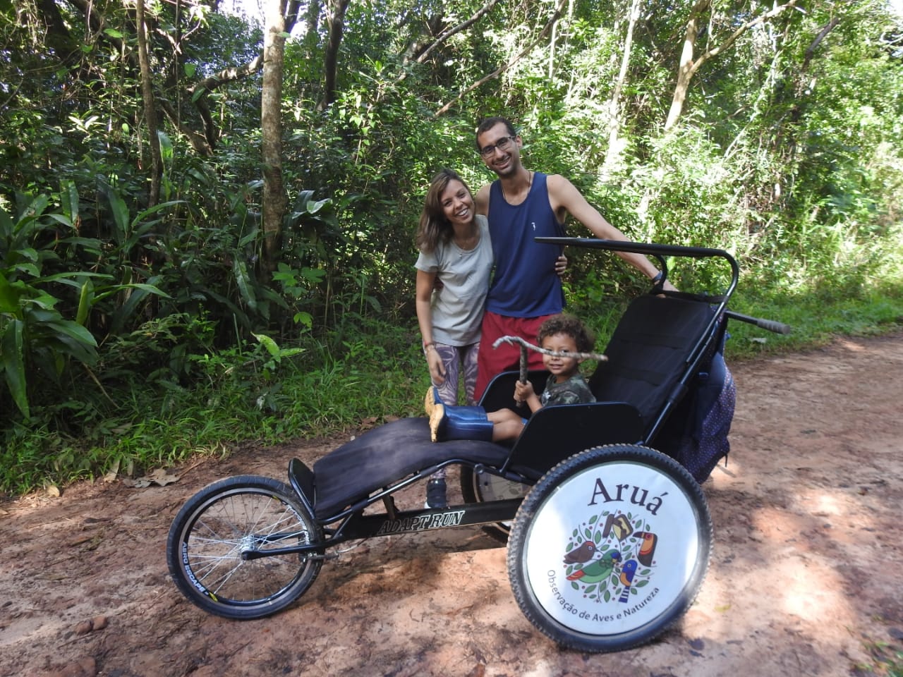 Trilha para observação de aves e também outros animais como a ameaçada Preguiça-de-Coleira (Bradypus torquatus). Venha aprender sobre a Mata Atlântica, descobrir pegadas de animais, diferentes tipos de ninhos, sentir/ouvir a floresta de perto. As trilhas acontecem pela Floresta do Aruá, Mata Atlântica preservada, com guia especializado.
