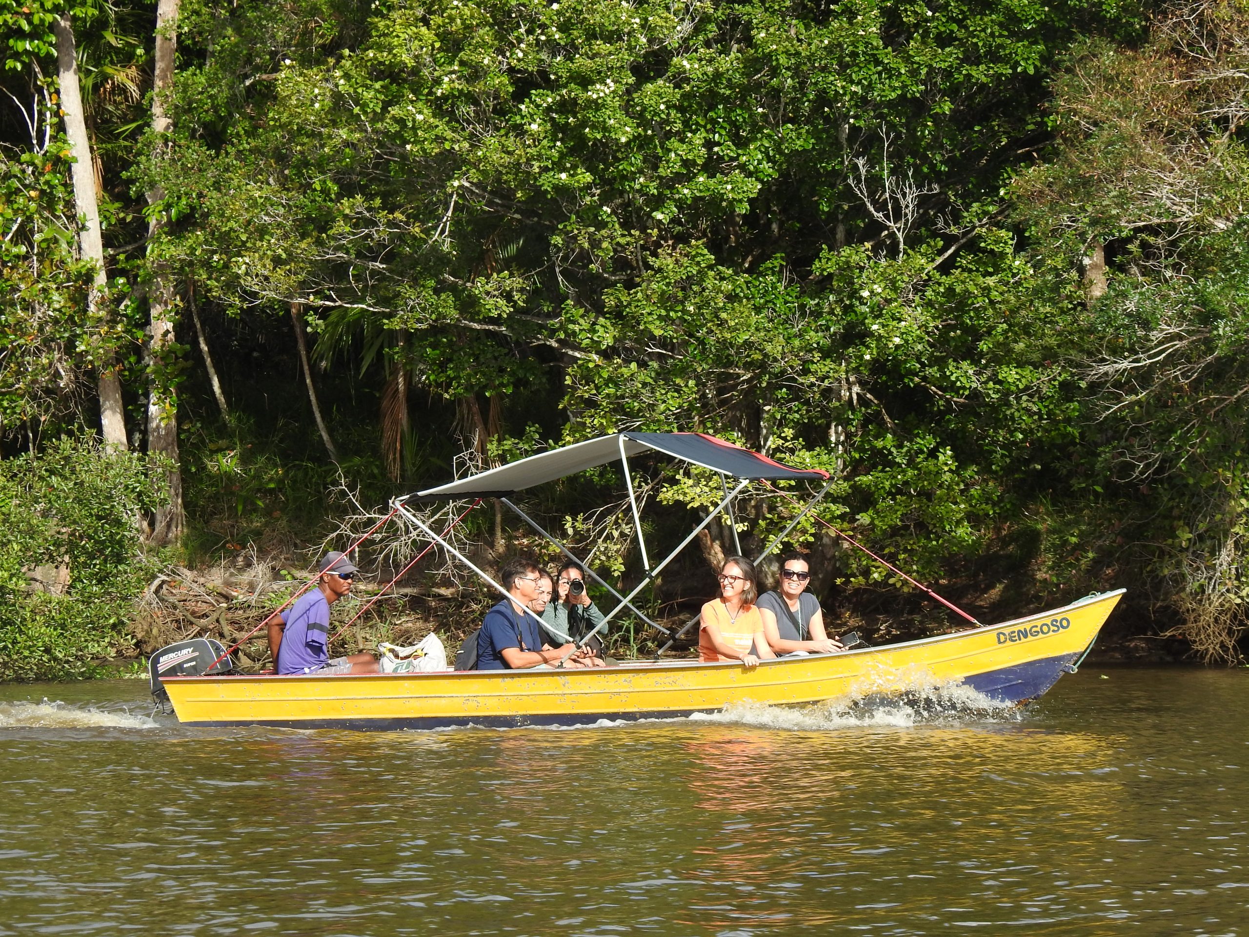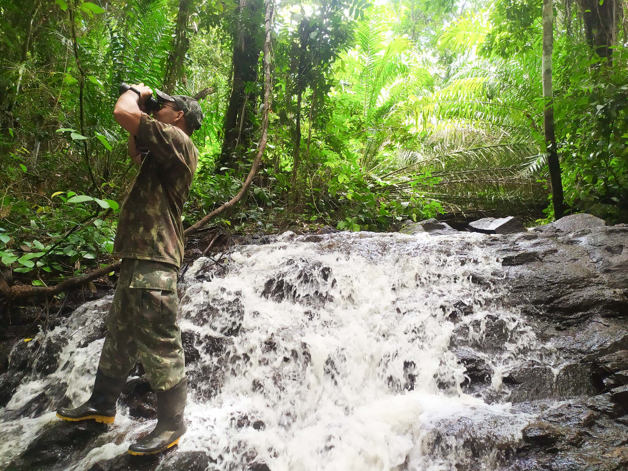 As saídas acontecem em Mata Atlântica preservada, com guia especializado. O roteiro contempla trilhas pela reserva, banho de rio e cachoeira e saída de barco pelo Rio Pojuca para observação de aves do manguezal.